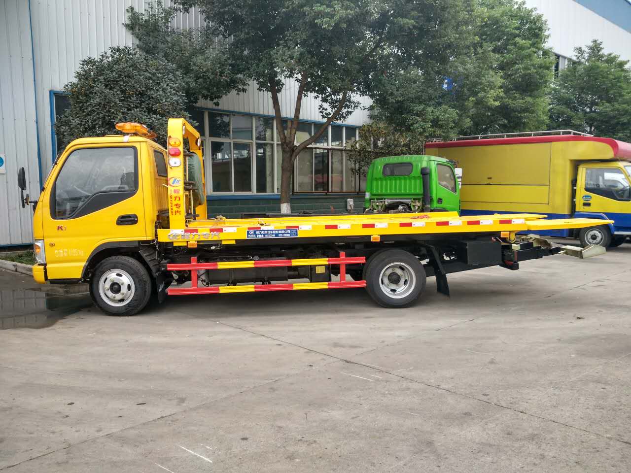 上裝標配花紋板和壓制板兩種。隨車配綁帶4根,L型托叉壹對,4T卷揚,20m的鋼絲繩。警燈一套,底盤合格證,保修手冊,整車合格證,整車票,整車說明書,及隨車工具一套,顏色可選。