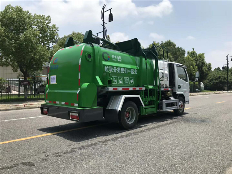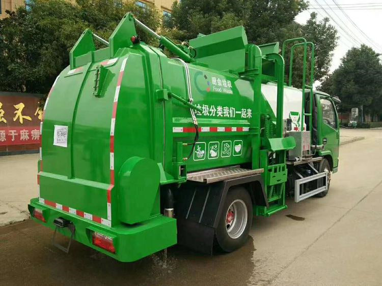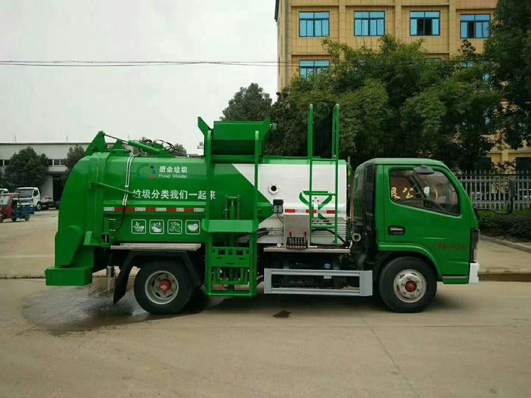 餐廚垃圾車,又稱餐余垃圾車、余廚垃圾車或者泔水車,是用于收集和運(yùn)輸生活垃圾、食品垃圾(泔水)及城市淤泥的專用車輛,改裝部分具有裝、卸垃圾自動(dòng)化程度高、工作可靠、密封性好、裝載容積大、操作簡便、作業(yè)過程密閉,無污水泄露和異味的散發(fā),環(huán)保性好等特點(diǎn)。可配裝載不同規(guī)格的標(biāo)準(zhǔn)垃圾桶,具有廣泛的適用性。 該車型外形美觀,性價(jià)比高、安全可靠、駕駛便捷。主要用于收集與轉(zhuǎn)運(yùn)餐飲業(yè)、賓館、單位食堂等產(chǎn)生的餐廚垃圾,也可用于收集與轉(zhuǎn)運(yùn)居民小區(qū)廚余和生活垃圾。 上裝由箱體、后門機(jī)構(gòu)、密封鎖緊機(jī)構(gòu)、推板機(jī)構(gòu)、掛桶機(jī)構(gòu)及操縱機(jī)構(gòu)組成。 餐廚垃圾車主要性能及配置: 固液分離: 將桶裝餐廚泔水垃圾經(jīng)專用提升架緩緩上提,在車頂部倒入車廂內(nèi),被投放的垃圾經(jīng)過強(qiáng)有力的推板擠壓,垃圾箱底部與推鏟板面設(shè)置大量過濾孔,可真正實(shí)現(xiàn)箱內(nèi)餐廚垃圾固液的初步分離,被分離的液體進(jìn)入箱體底部的污水箱,固體垃圾被壓縮儲(chǔ)存在罐體,體積變小,如此反復(fù)待裝滿后送至餐廚垃圾資源優(yōu)化處理廠卸料。餐廚垃圾裝載由垃圾桶提升系統(tǒng)完成,該系統(tǒng)具有垃圾桶鎖止結(jié)構(gòu),裝卸安全可靠。垃圾桶與垃圾投入口銜接好,保證裝卸過程中餐廚垃圾不溢撒、不遺漏。垃圾投入口與推板之間有足夠距離,推板與罐體內(nèi)表面設(shè)有密封裝置,避免餐廚垃圾投入過程及分離過程中溢到推板后方。 液壓系統(tǒng)由泵、液壓閥和順序閥以及各種功能的液壓油缸、高低壓管路組成。關(guān)鍵部件可選用原裝進(jìn)口,保證產(chǎn)品工作可靠、安全 罐體內(nèi)分上、下兩層,下層為固液分離后污水收集箱,污水箱兩頭高,中間低,設(shè)有排污口,以保證污水排放干凈。 湖北程力國六5方多利卡福瑞卡餐廚垃圾車(廂式方罐)程力威牌CLW5073TCA6型餐廚垃圾車CLW5040TCALS6型餐廚垃圾車多方位圖片: