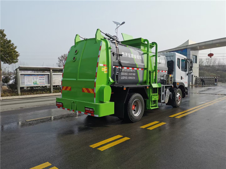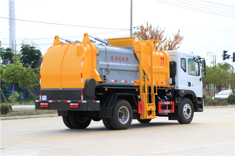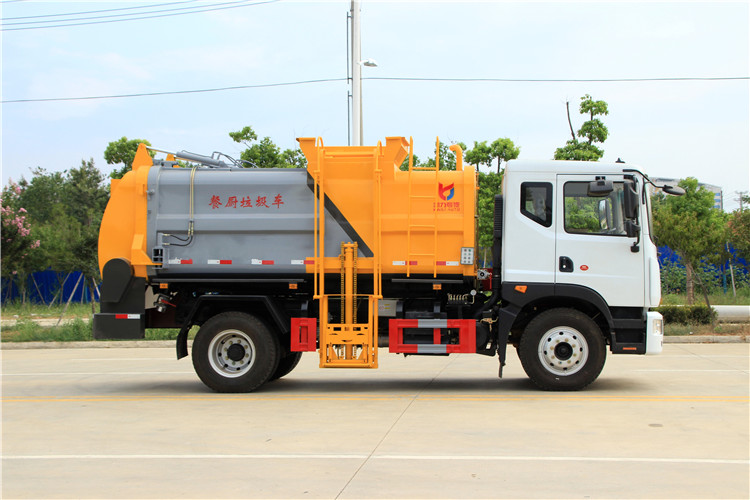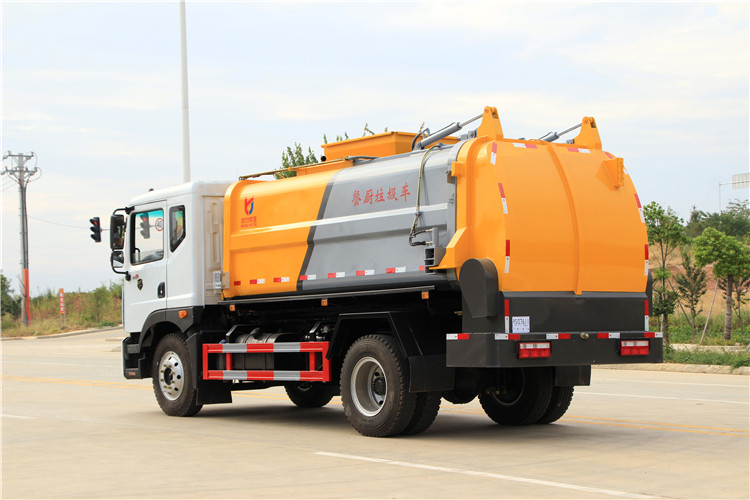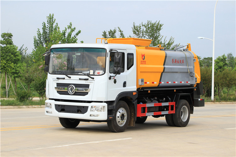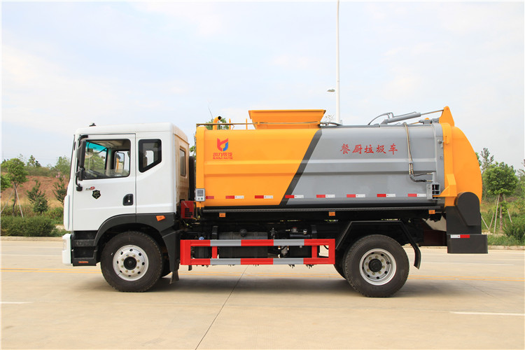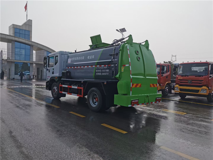 東風(fēng)多利卡D9國(guó)六10方餐廚垃圾車底盤配置:采用東風(fēng)D9系列新款駕駛室,4500mm軸距,搭載國(guó)六(國(guó)Ⅵ)玉柴200匹馬力/康明斯230柴油發(fā)動(dòng)機(jī),法士特8檔變速箱,9T后橋,10.00R20鋼絲胎,ABS,標(biāo)配電動(dòng)窗、中控鎖、鑰匙、日間行車燈、自動(dòng)落鎖、斷氣剎、定速巡航、瞬時(shí)油耗,科技感十足,駕乘更舒適,GB7258新規(guī)。 東風(fēng)多利卡D9國(guó)六10方餐廚垃圾車上裝配置:罐體容積10方,采用4mm碳鋼制作,圓距形罐體,液壓系統(tǒng),配拉桿式提升機(jī),可掛120/240升垃圾桶,推鏟卸料,具有干濕分離,罐體尾門液壓打開和鎖緊+手動(dòng)鎖緊裝置,罐尾設(shè)液體自流閥,液位窗,后門液壓開啟。用于運(yùn)輸液態(tài)垃圾,其特點(diǎn)操作簡(jiǎn)單,密封性好,無泄漏,無異味,常用于餐館的垃圾轉(zhuǎn)運(yùn)處理。 此款環(huán)衛(wèi)垃圾車可加裝配置:1、罐體內(nèi)部固液分離功能(全推推板,不銹鋼泔水分離網(wǎng)板);2、罐內(nèi)加熱功能(用于嚴(yán)寒地帶防止罐內(nèi)餐飲垃圾凍結(jié)凝固,采用柴油燃燒機(jī)加熱,加熱速度快效果好,可設(shè)置高低溫實(shí)現(xiàn)自動(dòng)溫控);3、稱重功能(垃圾桶提升架稱重計(jì)量);4、罐體清洗裝置(加裝高壓泵與高壓水槍);5、吸污功能(利用真空吸污裝置直接將餐飲垃圾吸入罐體)