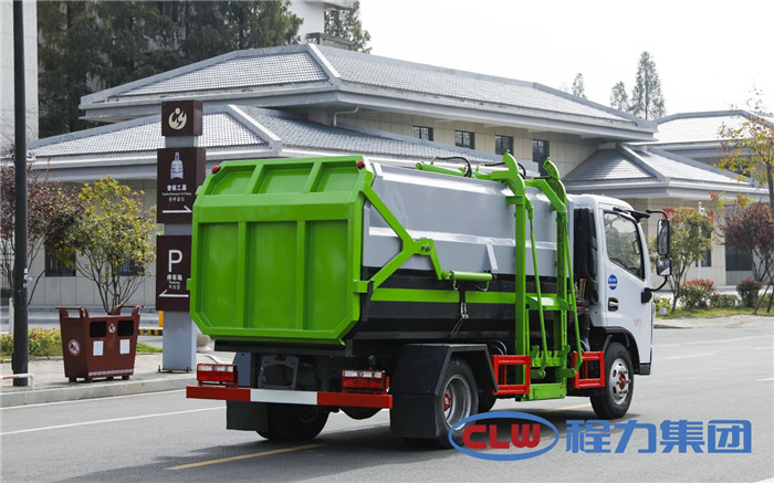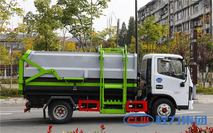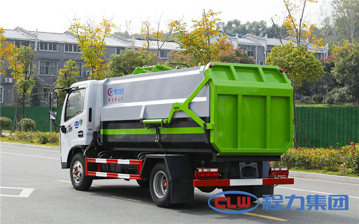 湖北程力國六東風(fēng)多利卡5方掛桶垃圾車(不帶壓縮)程力威牌CLW5071ZZZD6型自裝卸式垃圾車廠家配置: 底盤配置:東風(fēng)小多利卡國六5方掛桶垃圾車(不帶壓縮),采用東風(fēng)原裝底盤,D6系列新款駕駛室,采用東風(fēng)朝柴升級版CY4BK461國六排放發(fā)動機(jī),95KW,130匹大馬力,萬里揚5擋變速箱,7.00鋼絲胎,國六車輛在國五基礎(chǔ)上增加了DPF顆粒捕捉器,多功能方向盤。 掛桶垃圾車是由密封式垃圾廂、液壓系統(tǒng)、操作系統(tǒng)組成,實現(xiàn)一車與多個垃圾桶聯(lián)合作業(yè),廂體上的液壓提升機(jī)裝置可將垃圾桶吊上、放下,上下升降。箱體采用Q235碳鋼板焊接而成,小多利卡、大多利卡為邊3底4mm厚度,3950軸距以上為邊4底5mm厚度,箱體底部油缸舉升自卸,側(cè)面提升機(jī)可選鏈條式、拉桿式,后門手動開啟加裝手電一體加一千,箱體加厚請電議。 湖北程力國六東風(fēng)多利卡5方掛桶垃圾車(不帶壓縮)程力威牌CLW5071ZZZD6型自裝卸式垃圾車多方位圖片;