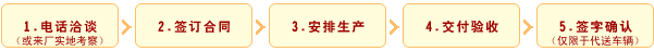 第一步:購車洽談:通過電話聯系或實地考察洽談車輛型號、價格和相關要求。
