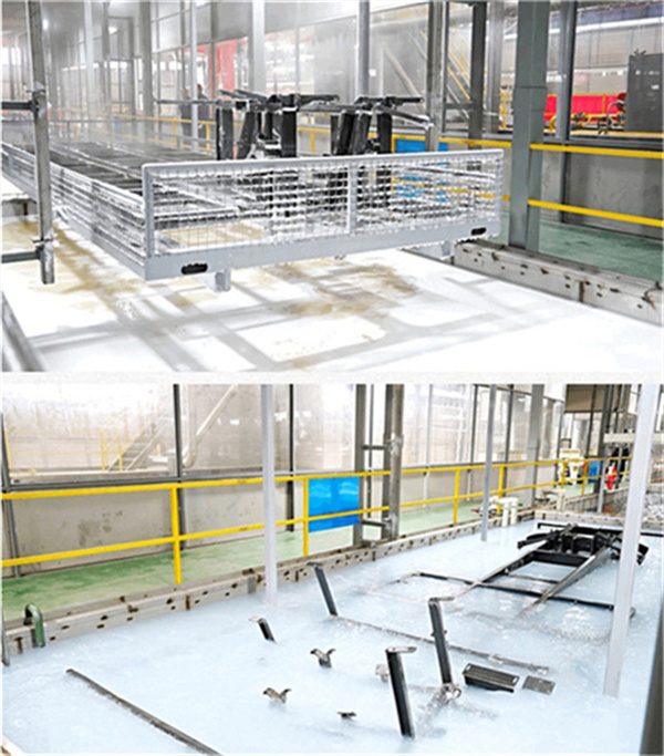 防銹處理一直是專用車行業不能回避的話題,防銹處理做得好不好直接關系到產品使用壽命。在電泳技術出現前,行業內普遍使用的是酸洗磷化工藝,產品使用壽命相對較短,不利于保護環境。程力專用汽車股份有限公司提供圖片