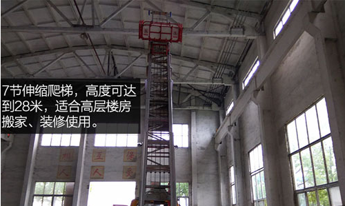 7節(jié)伸縮爬梯,高度可達到28米,適合高層樓房搬家、裝修使用。爬梯頂部安裝滑輪,適合貼墻升高時使用。云梯采用韓國進口技術,部分部件采用韓國原廠整裝進口!包括液壓系統(tǒng),油路管件都是韓國原廠提供。