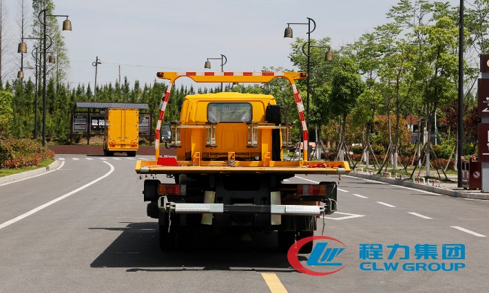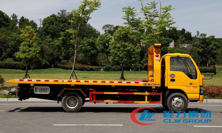 湖北程力國六五十鈴黃牌一拖二清障車(5.6米板長)程力威牌CLW5070TQZQ6型清障車廠家配置: 湖北程力五十鈴黃牌一拖二清障車配置: 采用五十鈴單排可前翻駕駛室,五十鈴120馬力發(fā)動機,5檔箱,油剎,帶ABS,冷暖空調(diào),電動玻璃,中控鎖,7.00R16鋼絲胎。 4噸上裝4噸卷揚,25米鋼絲繩,雙側(cè)聯(lián)動操作,有花紋板及壓制板可選,配輔助小車一套,四根捆綁器。